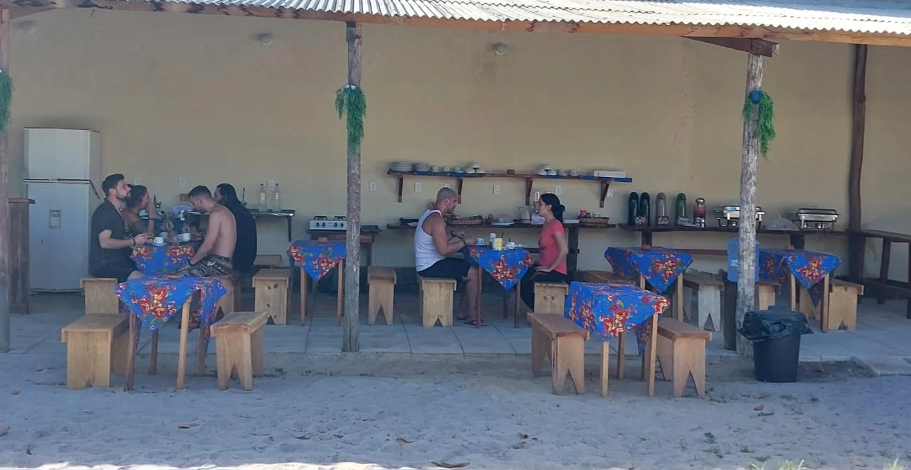 - • Banheiros individuais com água quente, área de redes para descanso e café da manhã servido diariamente.
